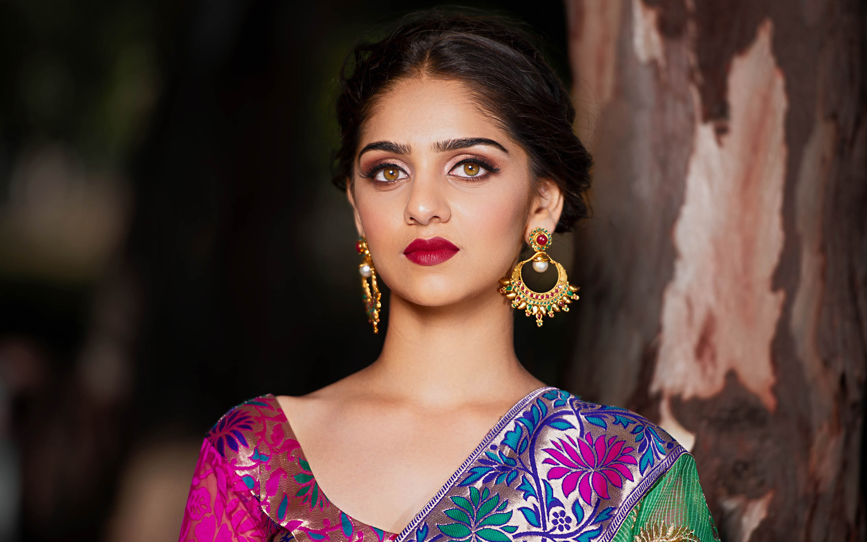 The model Riya wore the traditional attire during the collaboration photoshoot with makeup artist Sumitra Joshi at Lotus Bay.